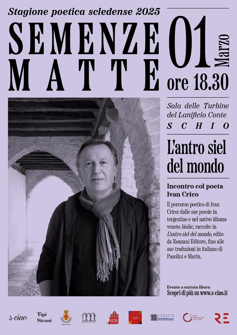 Il percorso poetico di Ivan Crico: dalle sue poesie in tergestino e nel nativo idioma veneto bisiàc, raccolte in L’antro siel del mondo, edito da Ronzani editore, fino alle sue traduzioni in italiano di Pasolini e Marin. [...]
