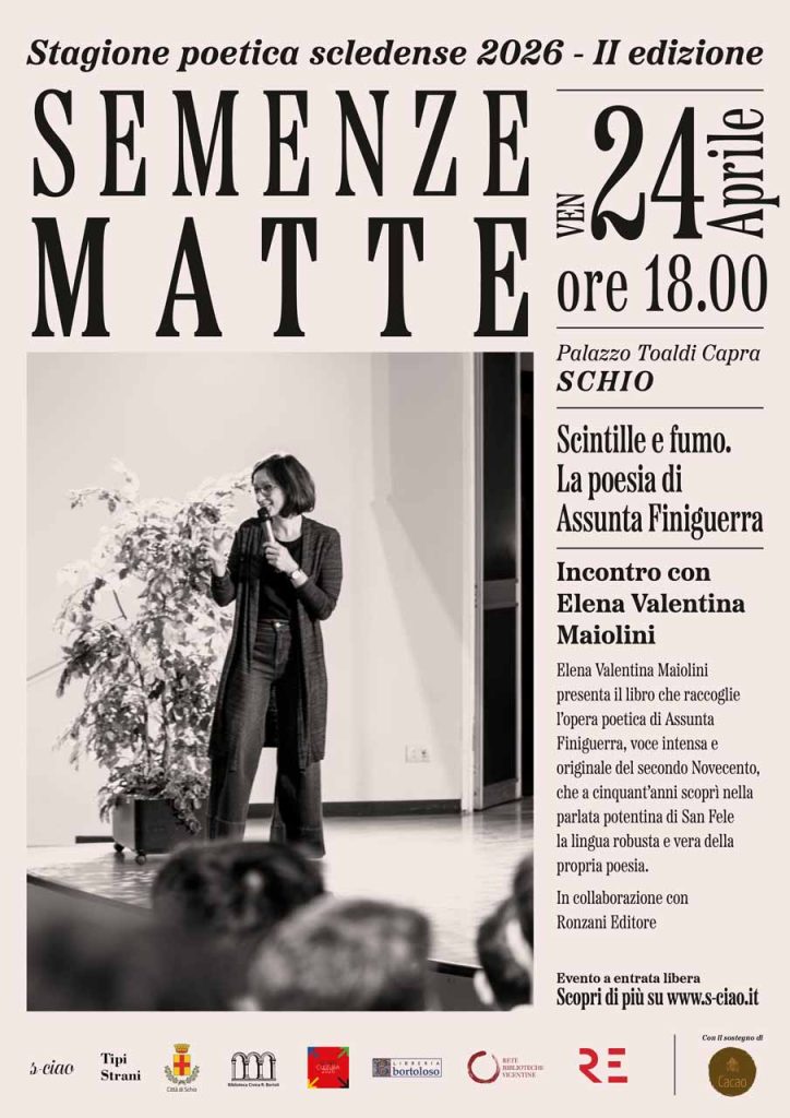 Ingresso libero. Il progetto è promosso dall’APS Centro Studi Internazionale Altre Origini S-CIAO con il Comune di Schio, la Biblioteca Civica Renato Bortoli e la Libreria Bortoloso, nell’ambito del Bando Cultura 2026.